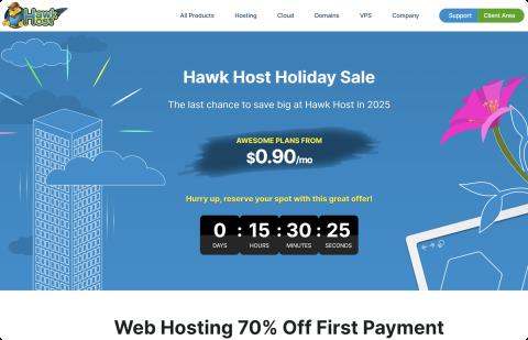 #年终促销#HawkHost:全场虚拟主机低至3折,$0.9/月起,云服务器8折,$4/月起