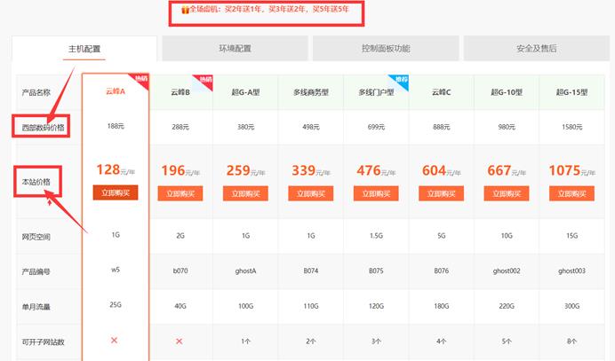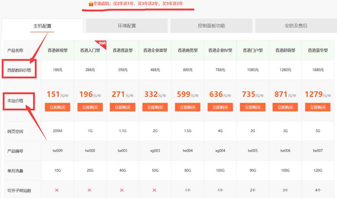 云峰A 、云峰B等西部数码同款产品,香港云空间定价大幅优惠,如下图。点击产品直达