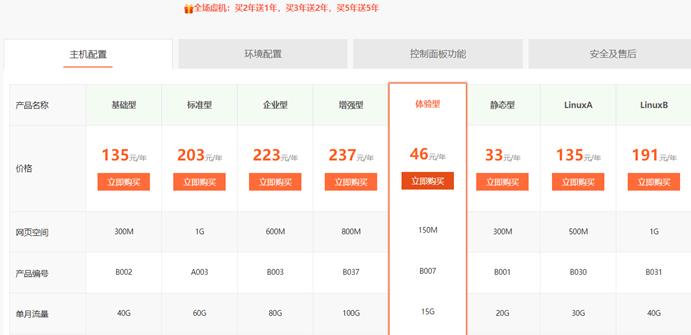 | 空间 | CPU | 内存 | 数据库 | 内地、香港机房 | 带宽 | 开子站数 | 价格 | 购买 |