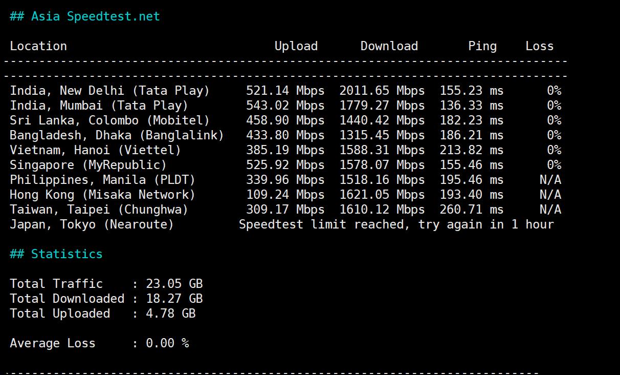 SpeedTest.Net的亚洲节点的速度测试: