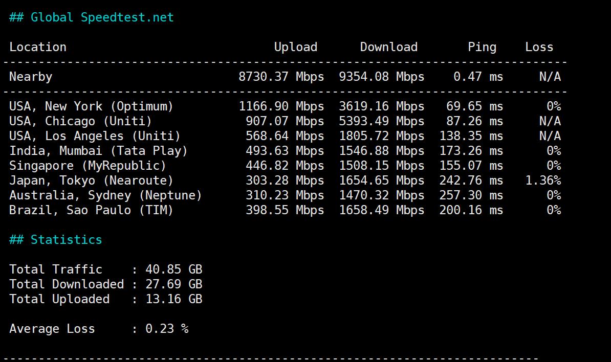 SpeedTest.Net的国际节点的速度测试::