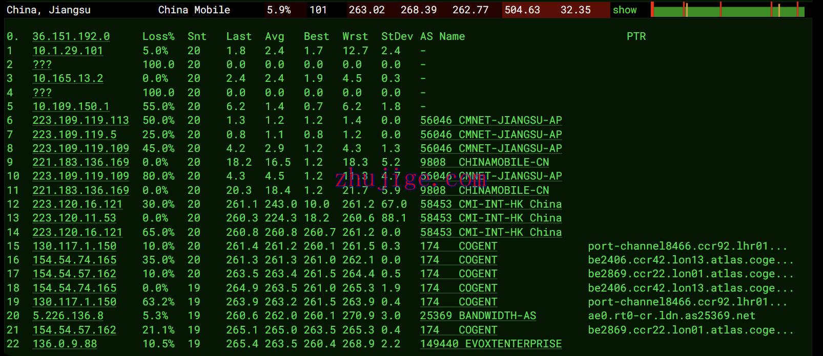 全球丢包测试: