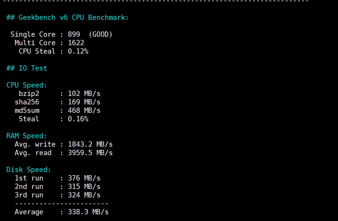 配置信息/CPU测试/内存测试/硬盘IO读写: