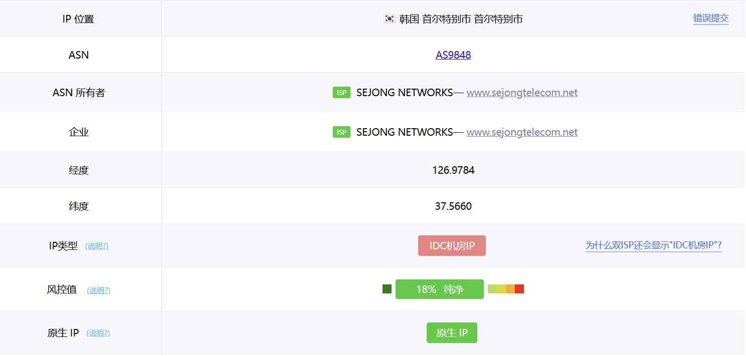 测试为韩国原生IP