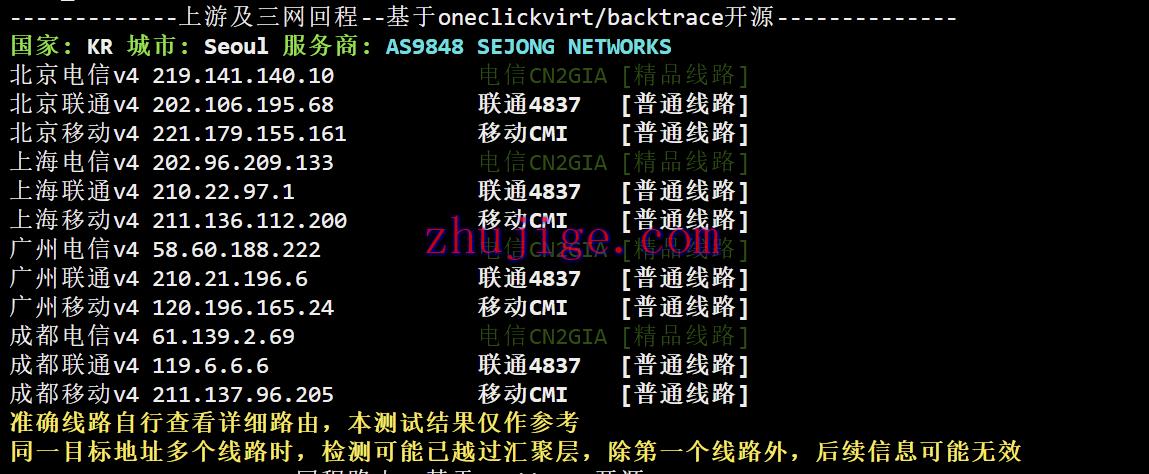 网络方面,三网去程全部直连(电信还是高端CN2);