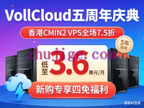 VollCloud 五周年庆典:香港 CMIN2 VPS 全场 7.5 折 低至 3.6 美元 / 月 新购专享四免福利 时光荏苒,岁月如梭,VollCloud 已悄然走过五载春秋。值此五周年盛典之际,我们满怀感恩与热忱,向每一位信赖相伴的客户致以最诚挚的谢意。感谢大家五年的坚守与支持,您的每一次选择,都是对我们最有力的肯定;您的每一条建议,都是我们迭代前行的不竭动力。 本次 VollCloud 五周年庆典,我们全面加...