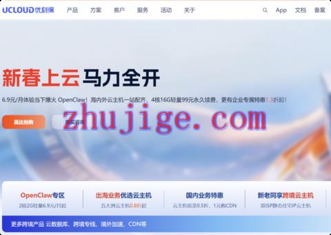 UCloud 新春算力盛典重磅来袭!海内外云主机 0.5 折起,4 核 16G 轻量 99 元永久续费 新春上云正当时,UCloud 重磅推出AI 智算引擎算力盛典,带来全品类云产品超值折扣,从个人轻量应用到企业级算力需求,从国内云主机到全球五大洲节点部署,从普通云服务到 AIGC 专属 GPU 算力,一站式满足各类上云需求。本次活动福利拉满:6.9 元 / 月体验 OpenClaw 个人 AI 助手...